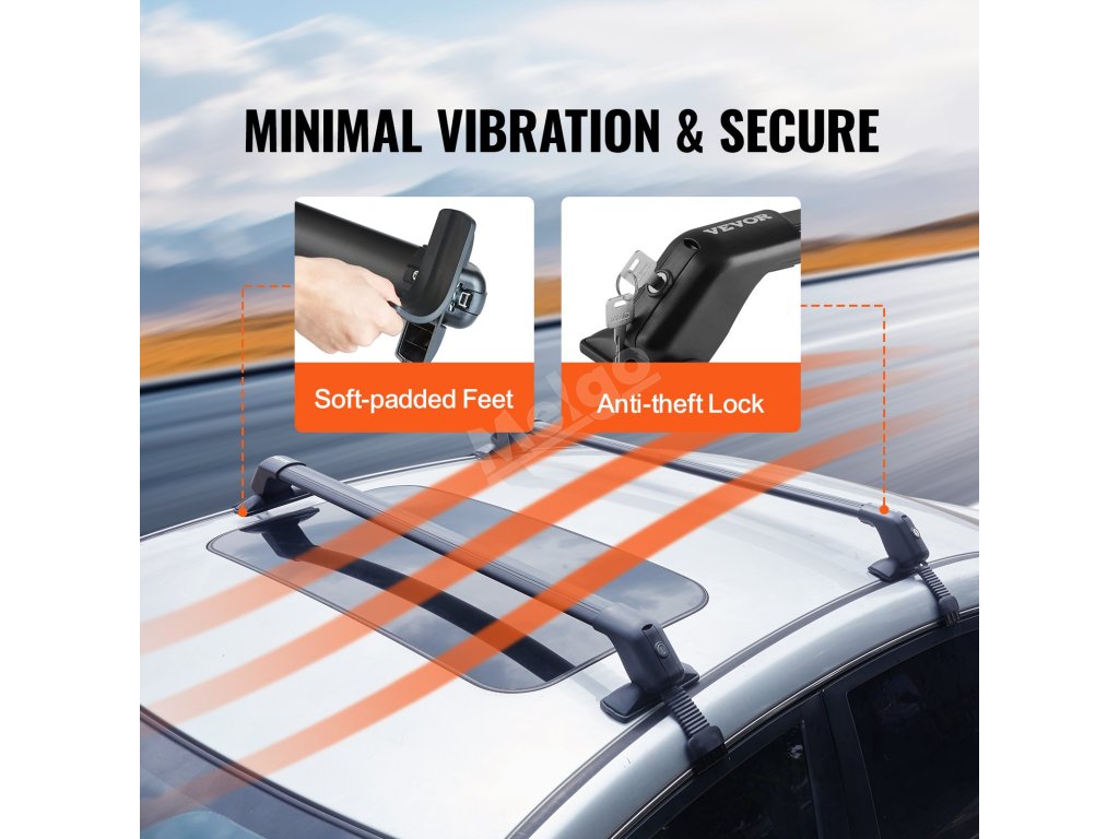 Příčné tyče střešního nosiče jsou vyrobeny z nejkvalitnějších materiálů včetně zesíleného hliníku; naše tyče střešního nosiče jsou konstruovány tak, aby vydržely. Nemusíte se bát, že se zdeformují nebo zlomí, takže se můžete vydat na nesčetná dobrodružství.