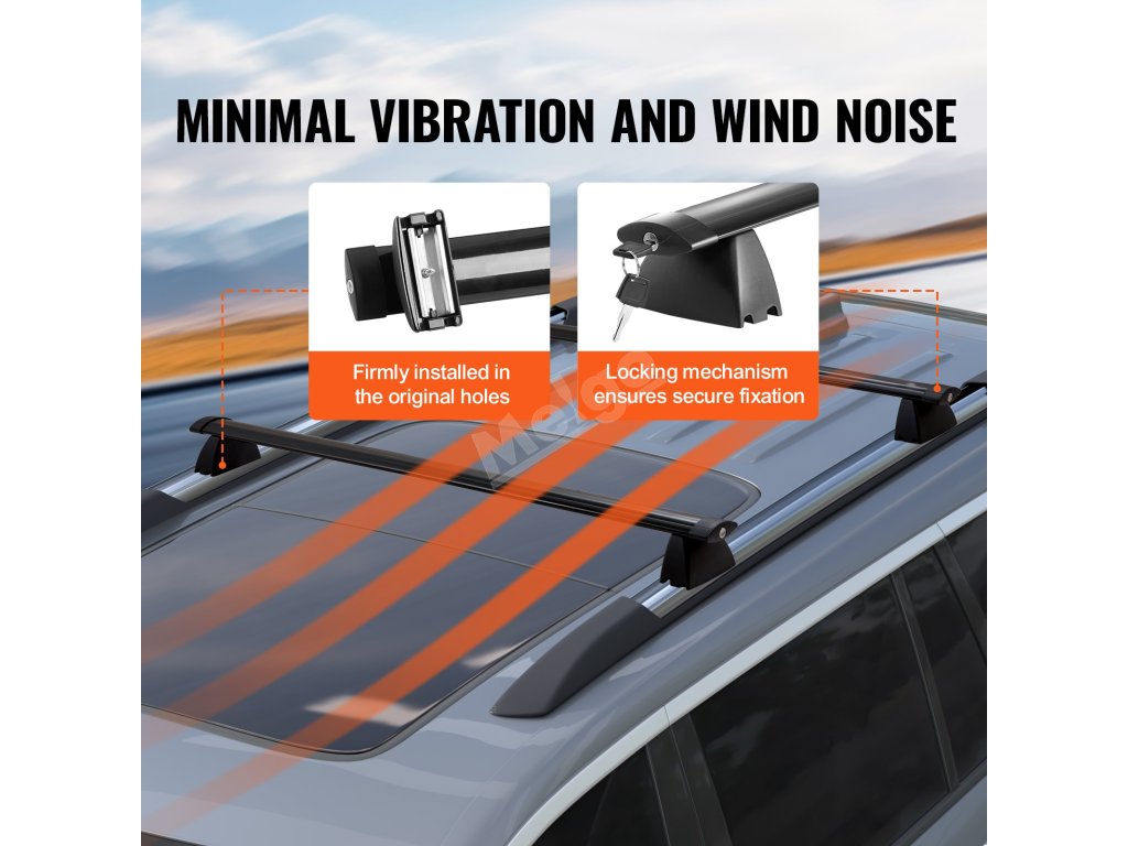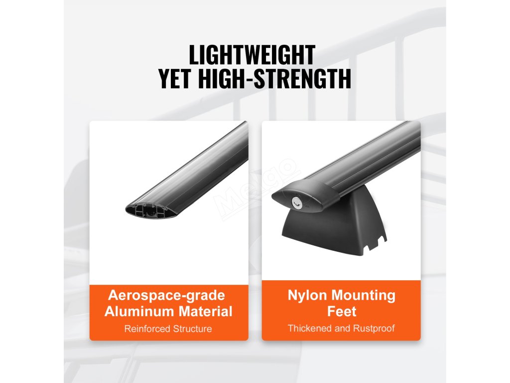 Příčné tyče střešního nosiče jsou vyrobeny z nejkvalitnějších materiálů včetně zesíleného leteckého hliníku; naše tyče střešního nosiče jsou konstruovány tak, aby vydržely. Nemusíte se bát, že se zdeformují nebo zlomí, takže se můžete vydat na nesčetná dobrodružství.