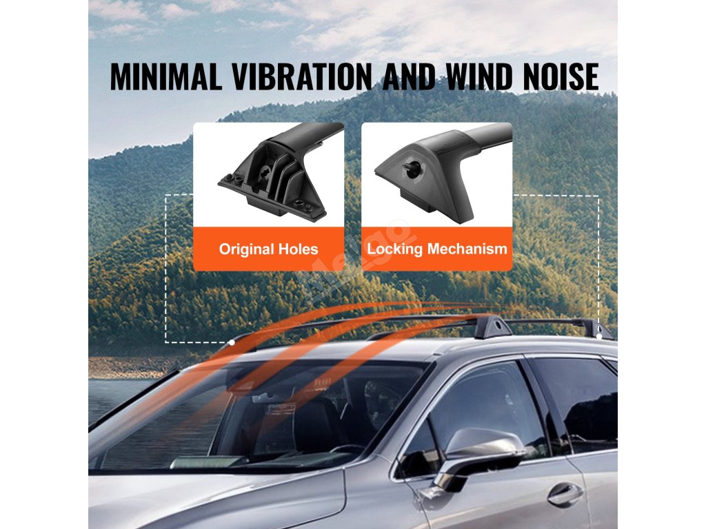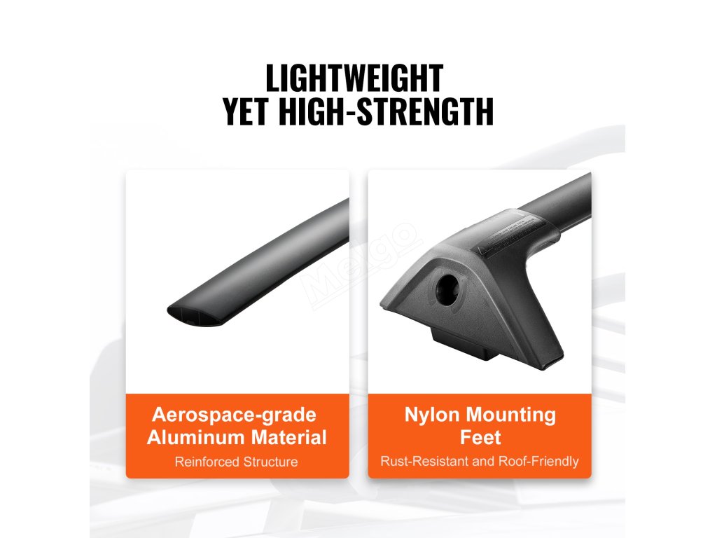 Příčné tyče střešního nosiče jsou vyrobeny z nejkvalitnějších materiálů včetně zesíleného leteckého hliníku; naše tyče střešního nosiče jsou konstruovány tak, aby vydržely. Nemusíte se bát, že se zdeformují nebo zlomí, takže se můžete vydat na nesčetná dobrodružství.