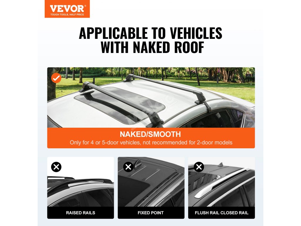 Střešní příčné tyče hliníkové s zámky pro vozidla bez lyžin 70.3 kg