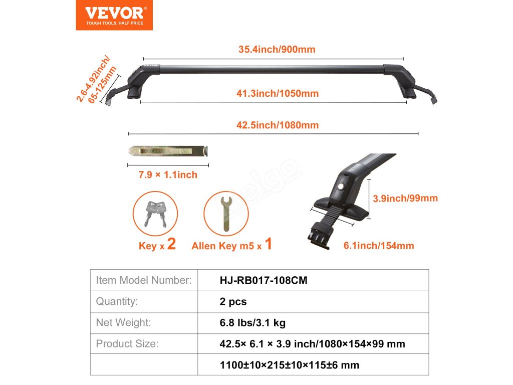 Příčné tyče střešního nosiče jsou vyrobeny z nejkvalitnějších materiálů včetně zesíleného leteckého hliníku; naše tyče střešního nosiče jsou konstruovány tak, aby vydržely. Nemusíte se bát, že se zdeformují nebo zlomí, takže se můžete vydat na nesčetná dobrodružství.