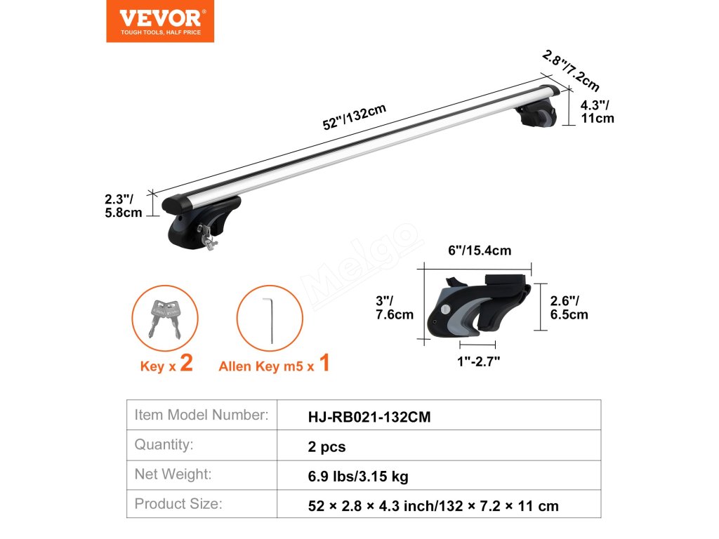 Příčné tyče střešního nosiče jsou vyrobeny z nejkvalitnějších materiálů včetně zesíleného leteckého hliníku; naše tyče střešního nosiče jsou navrženy pro dlouhodobé používání.