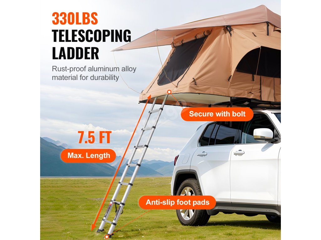 Střešní stan hardshell pro 2–3 osoby, teleskopický žebřík, matrace