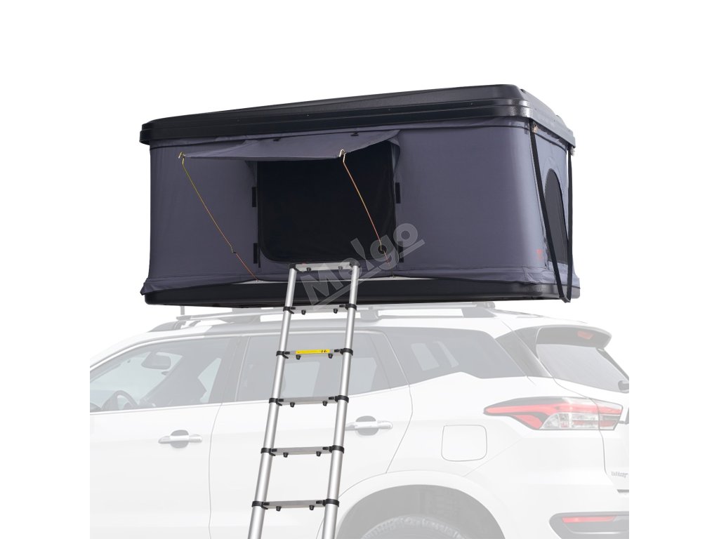 Tvrdá skořepina z ABS je pevná a odolná proti rozbití, takže účinně odolává nárazům. Podpěrné tyče z nerezové oceli hladce postaví střešní stan a usnadní jeho stavění.