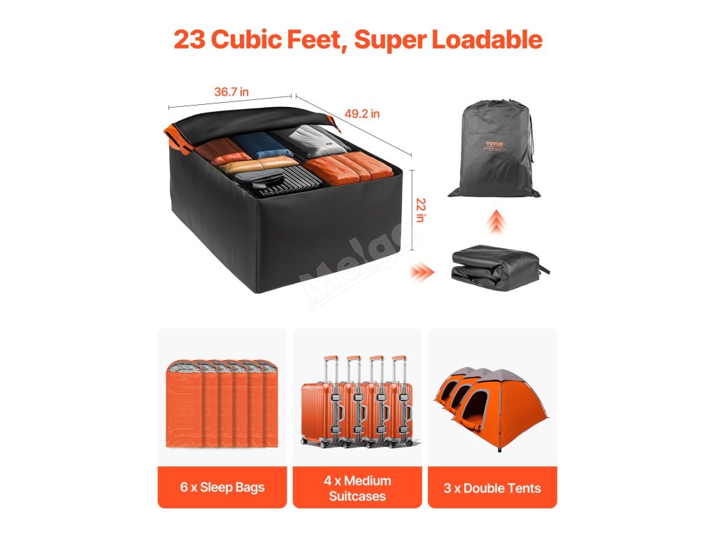 Tento střešní nákladní vak se může pochlubit mimořádně velkým objemem 23 krychlových stop, do kterého se snadno vejdou kufry, stany, spací pytle a další cestovní potřeby. Dejte sbohem starostem s úložným prostorem - uvolněte si místo ve vozidle a získejte větší pohodlí na cestách.