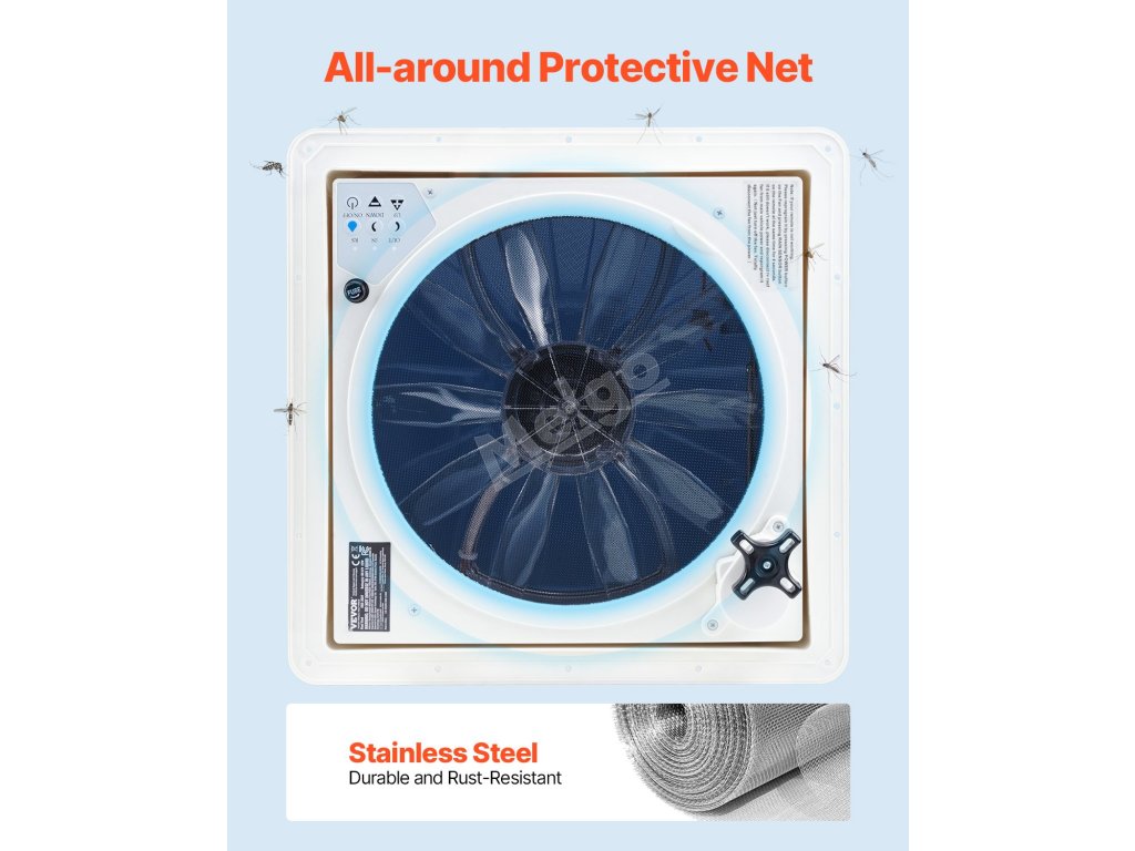 Ochranná sieťka je odnímateľná a ľahko sa čistí! Odnímateľná konštrukcia umožňuje pohodlne udržiavať čistý vzduch vo vašom obytnom vozidle.