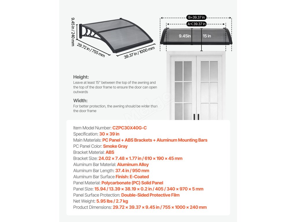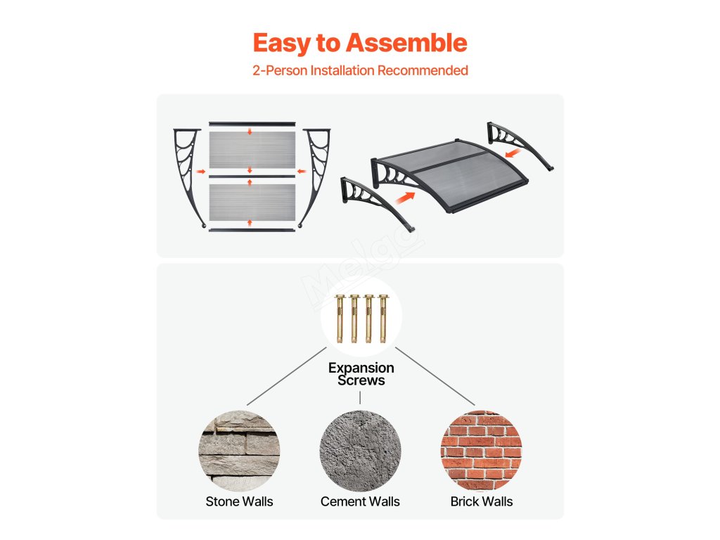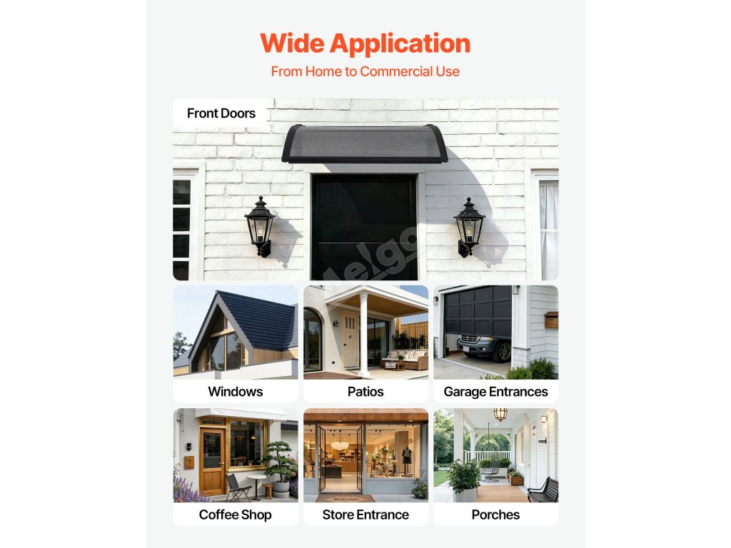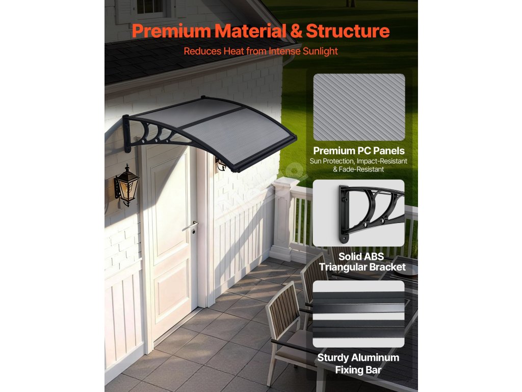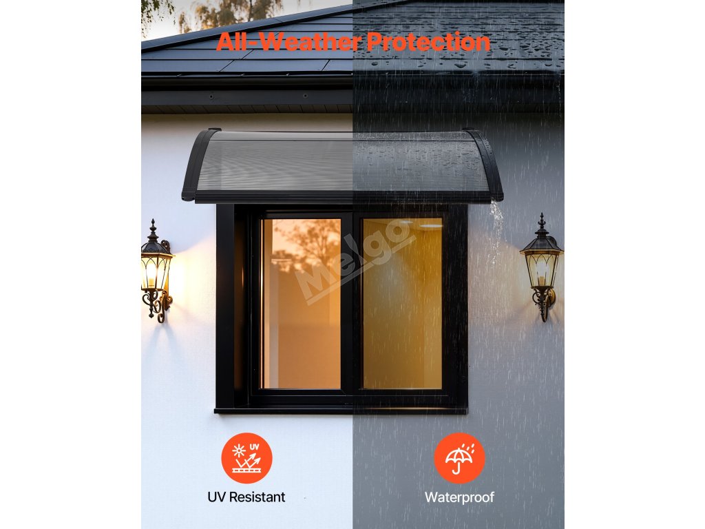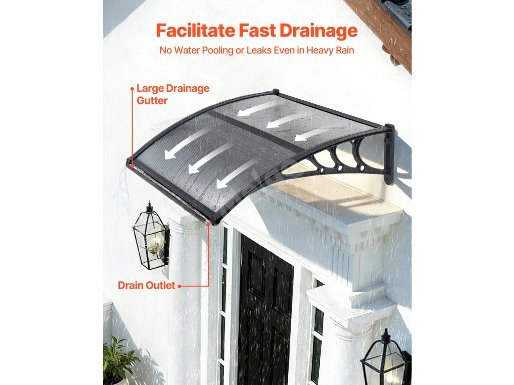 Polykarbonátová markýza okenních dveří je vybavena zvětšeným a vylepšeným odtokovým žlabem, který účinně odvádí dešťovou vodu od vchodu. Pomáhá předcházet kluzkému povrchu a zároveň poskytuje spolehlivé celoroční řešení ochrany před povětrnostními vlivy s čistým, moderním vzhledem.