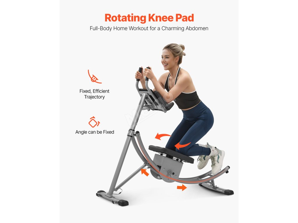 Na rozdíl od běžných cviků na sklapovačky tato konstrukce s rotujícími kolenními podložkami plně zapojuje jádro těla a aktivuje břišní svaly, aby se snadněji vytvaroval pas. Zakřivená tyč zvětšuje efektivní klouzavou vzdálenost, takže při každém opakování spálíte více tuku ve srovnání se stroji s rovnou tyčí.
