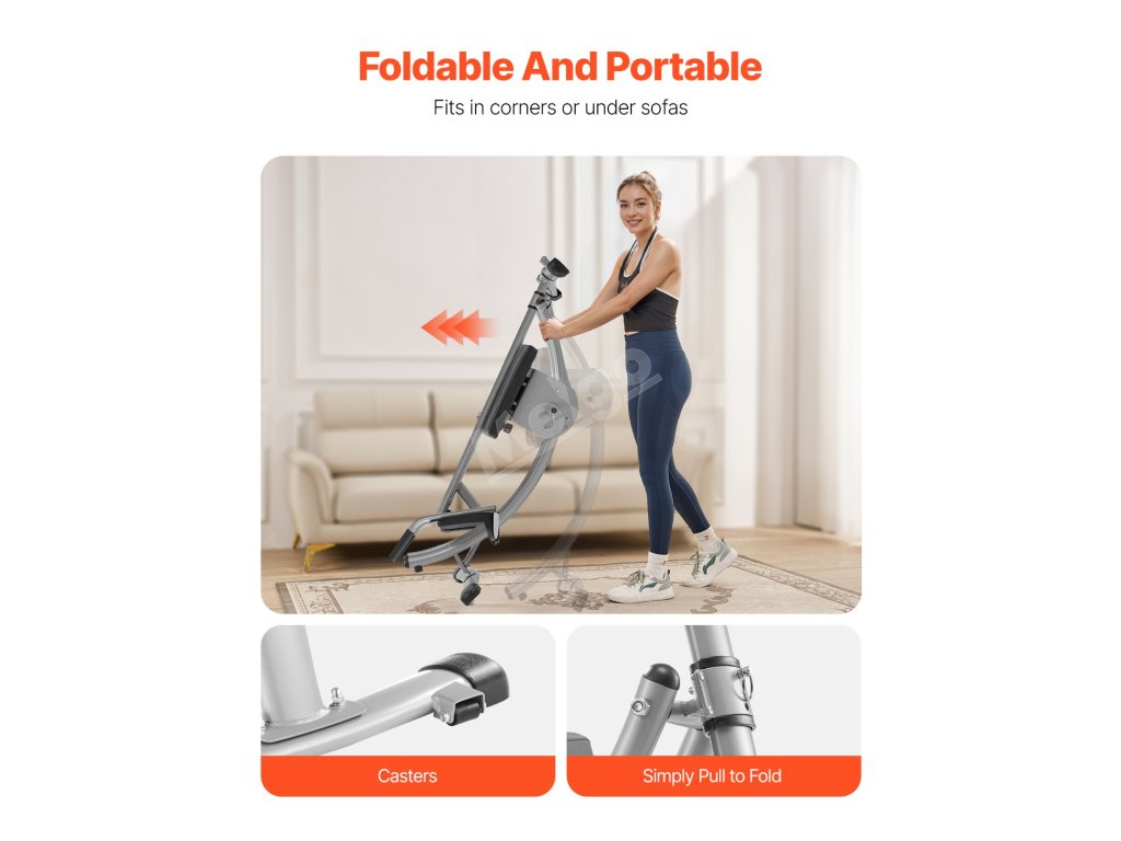 Vytažením kolíku se okamžitě zmenší plocha. Váš pokoj zůstane prostorný, i když se nepoužívá. Díky kolečkům lze trenažér břicha pro začátečníky ve složeném stavu snadno přemístit.