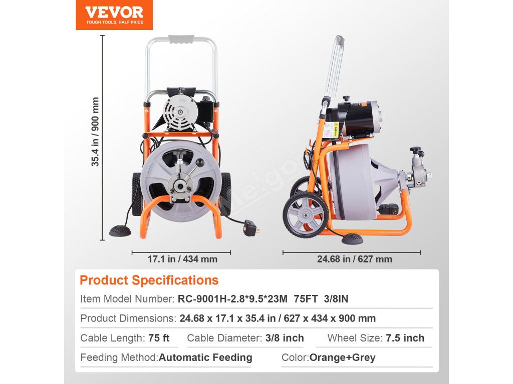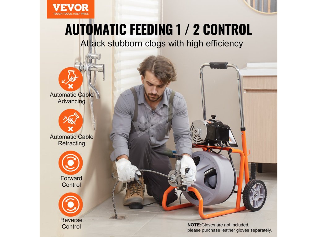 Už vás nebaví ucpané odpadní potrubí, drahé instalatérské služby a nedokončená kanalizace? Dejte sbohem nepříjemnému zápachu a nepříjemné údržbě! Nechte elektrický stroj na čištění odtoků VEVOR 75 FT x 3/8 In s pevným kabelem vyřešit všechny vaše problémy s ucpáním jedním tahem a bez jakýchkoli potíží!