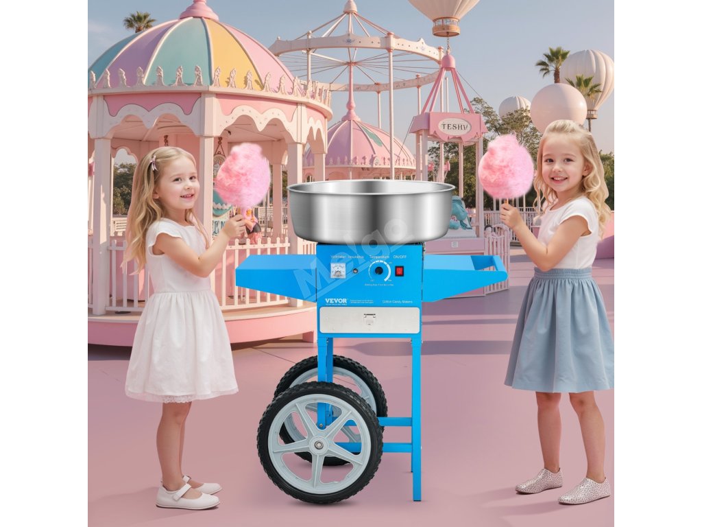 Stroj na cukrovou vatu 1000 W se 52 cm nerezovou miskou a vozíkem