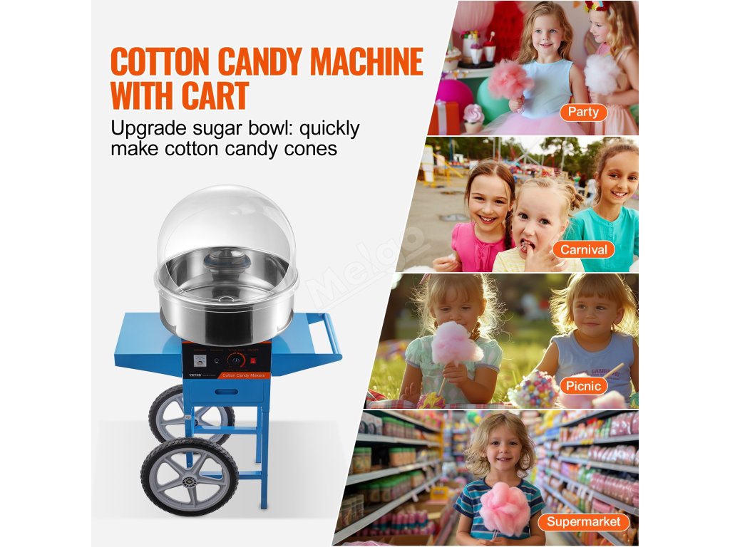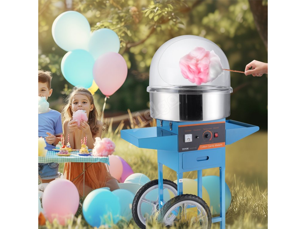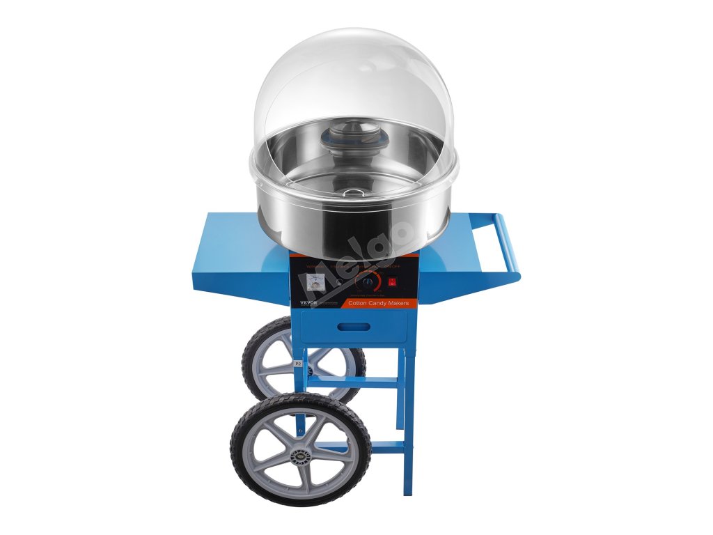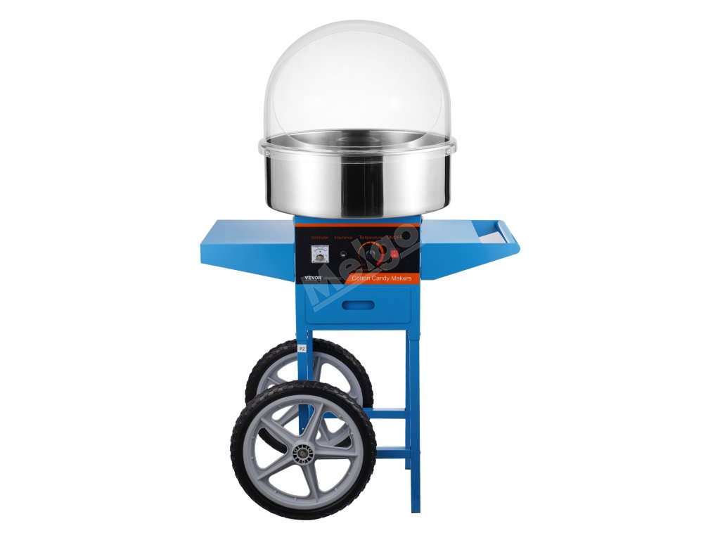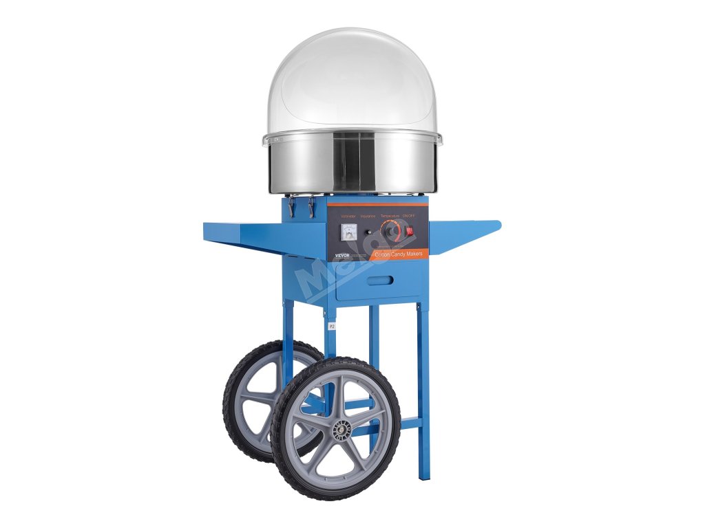 Stroj na cukrovou vatu 1000W s vozíkem, nerezová mísa, kryt, zásuvka