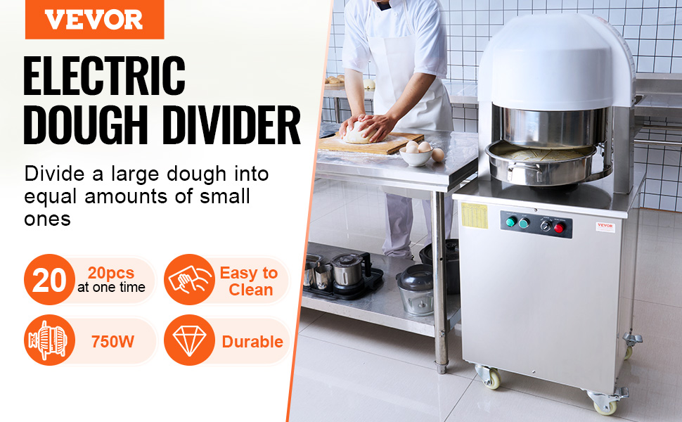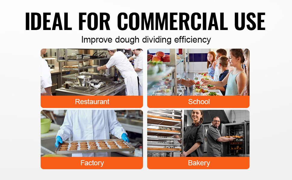 Tento dělič těsta je ideální pro přípravu pečiva, pizzy, sušenek, hamburgerů, chleba a dalších pokrmů. Je vhodný pro použití v restauracích, školách, továrnách, pekárnách a dalších prostředích s velkým objemem výroby potravin.