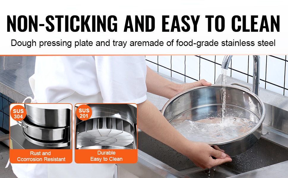 Tento dělič těsta je vyroben z robustní nerezové oceli SUS304 a je odolný proti korozi a opotřebení. Všechny části, které přicházejí do styku s potravinami, jsou vyrobeny z potravinářské nerezové oceli, což zajišťuje bezpečnost a trvanlivost.