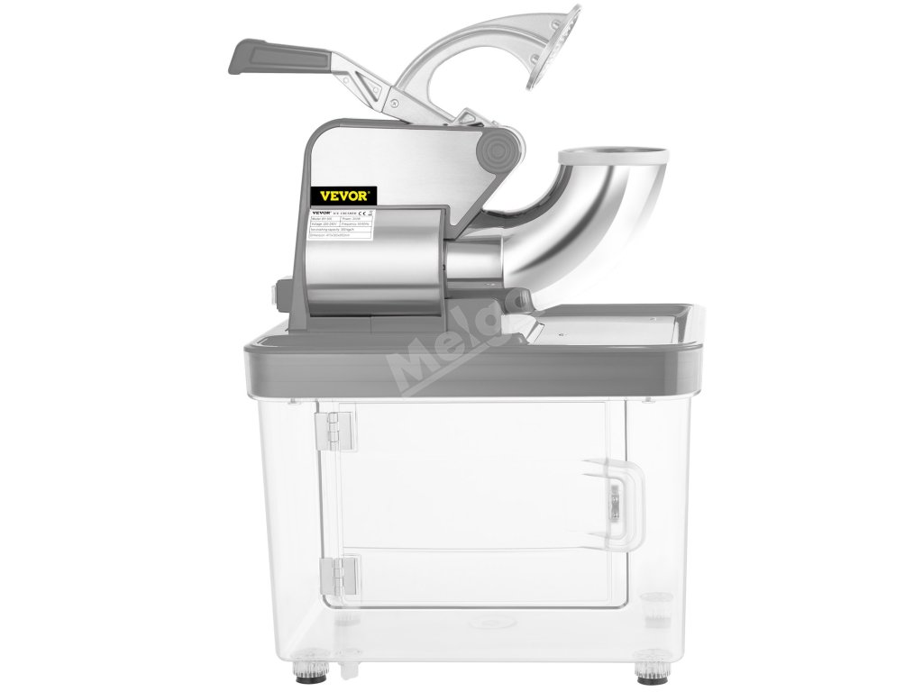 Zvětšený vstupní otvor eliminuje nutnost doplňování a tlačná deska s mřížkovým designem může zabránit rozstřikování ledu. Koncový spínač je součástí dodávky.