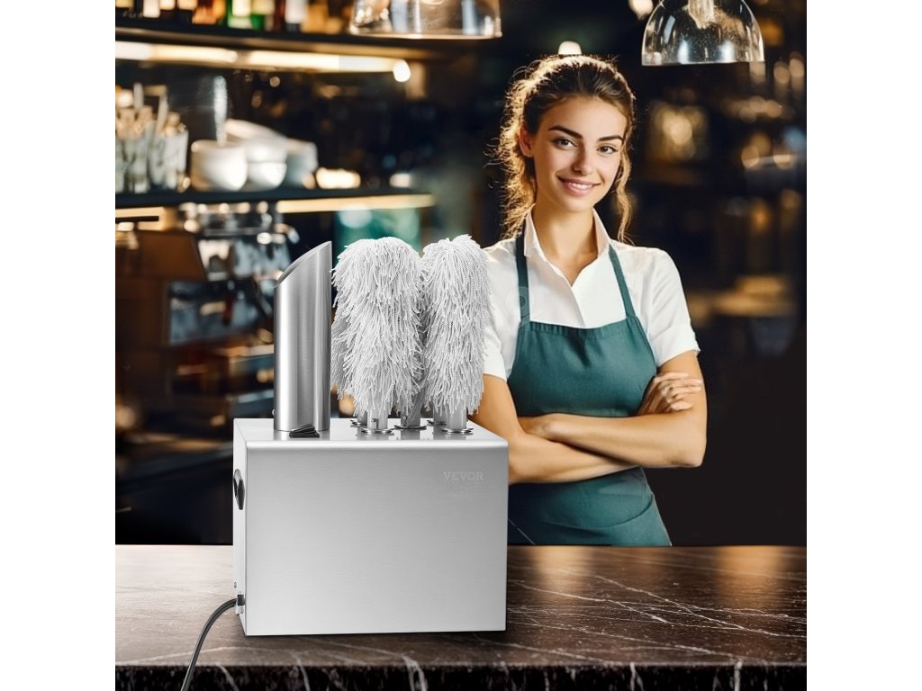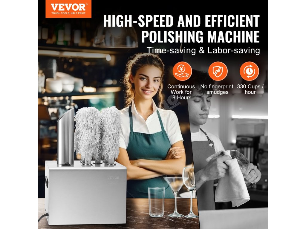 Elektrická leštička na sklo rychle leští sklenice a zajišťuje hladký a lesklý povrch, přičemž zabraňuje vzniku škrábanců, poškození nebo jakýchkoli stop. Je ideální pro splnění požadavků na čištění v době největšího provozu zákazníků.