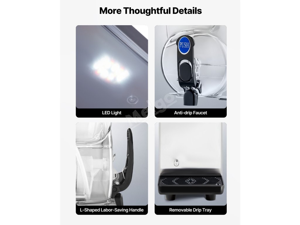 Ve spodní části je vybaven odkapávací miskou, která zabraňuje úniku vody a kterou lze pro snadné čištění vyjmout.