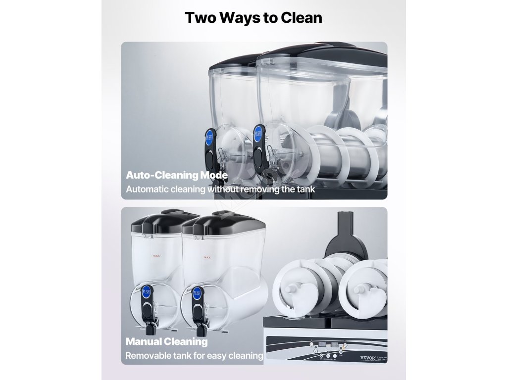 Tento komerční drtič ledu má dvě 15litrové nádrže a nádrž z nerezové oceli a PC, které nabízejí odolné a zdravotně nezávadné materiály.
