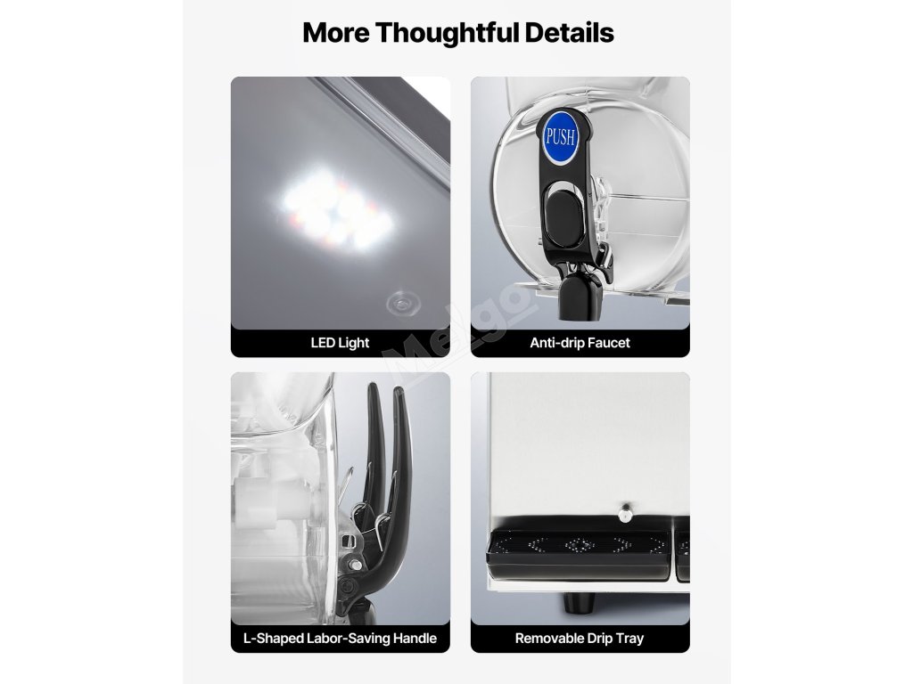 Ve spodní části je vybaven odkapávací miskou, která zabraňuje úniku vody a kterou lze pro snadné čištění vyjmout.