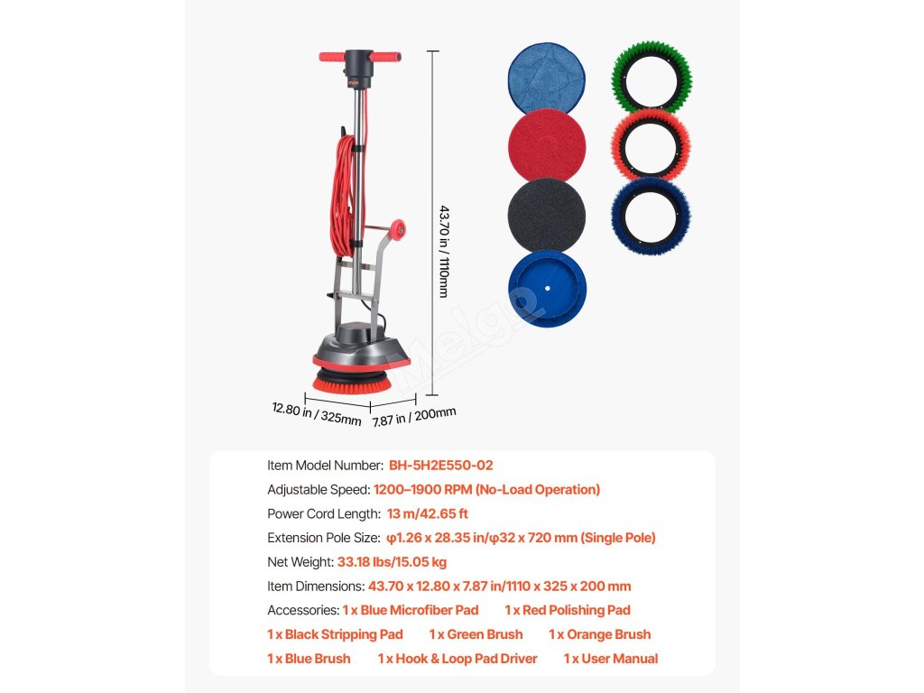 Stroj na mytí podlah, elektrický, 1900 RPM, 43 FT kabel, 2 kola