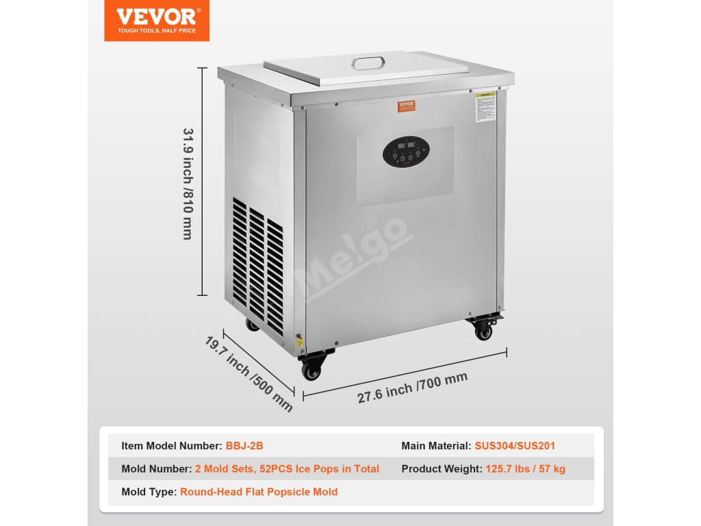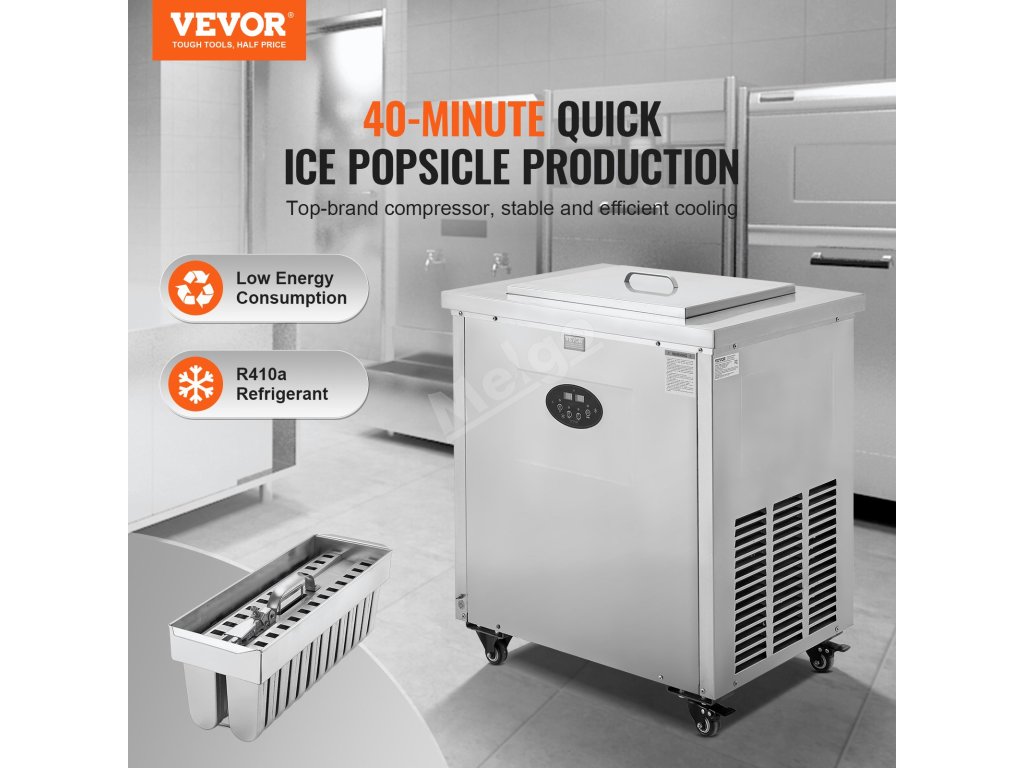 Komerční výrobník nanuků VEVOR se rychle zchladí za pouhých 40 minut, což vám umožní vytvářet nejrůznější příchutě nanuků. Díky 2 formám nastaveným na výrobu 52 nanuků současně se může pochlubit denní produkcí až 1 872 nanuků, čímž dokonale uspokojí nejrůznější chutě a požadavky.