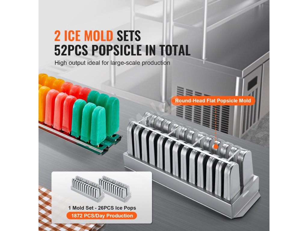 Stroj na nanuky 52 ks, 2 formy 26 ks/formu, nerezová ocel s hůlkami