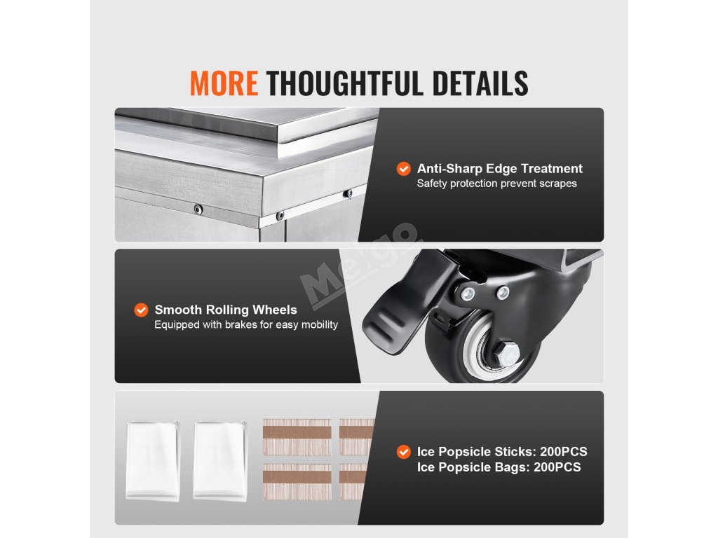 Náš stroj na nanuky je navržen pro snadnou přepravu do prodejen studených nápojů, mléčných čajů a dezertů a je vybaven čtyřmi kolečky, která zajišťují stabilitu a mobilitu během provozu bez námahy a zvyšují flexibilitu a pohodlí při výrobě nanuků.
