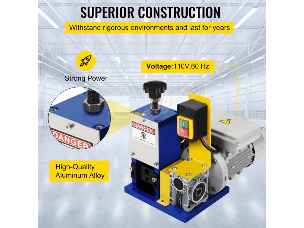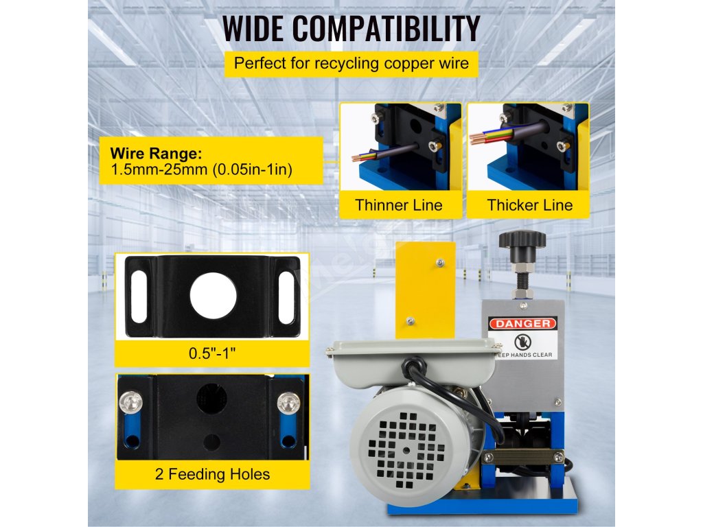 Odstraňovač izolace elektrických vodičů se široce používá u výrobců kabelů/vodičů, v recyklačních závodech a továrnách na výrobu měděných výrobků.Je vhodný k odstraňování plastové a pryžové izolace.