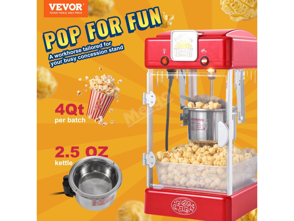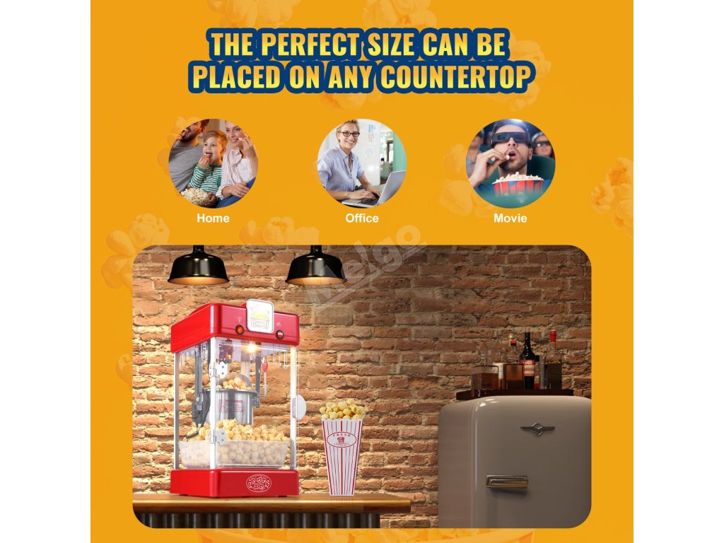 Tento stroj na popcorn je vhodný pro různé akce včetně narozeninových oslav, srazů, dobročinných akcí a sportovních událostí.