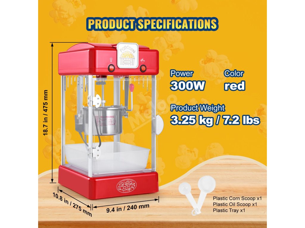 Stroj na popcorn 300W, konvice 2.5 Oz, 4 QT na dávku, stolní