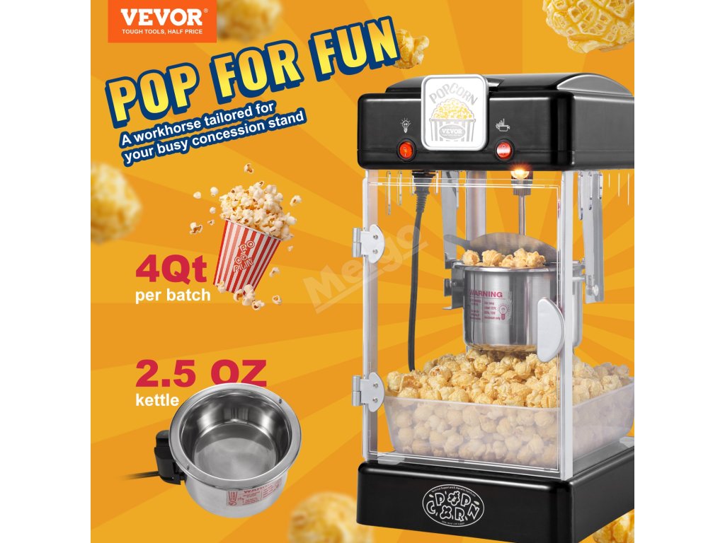 Tento stroj na popcorn je vhodný pro různé akce včetně narozeninových oslav, srazů, dobročinných akcí a sportovních událostí.