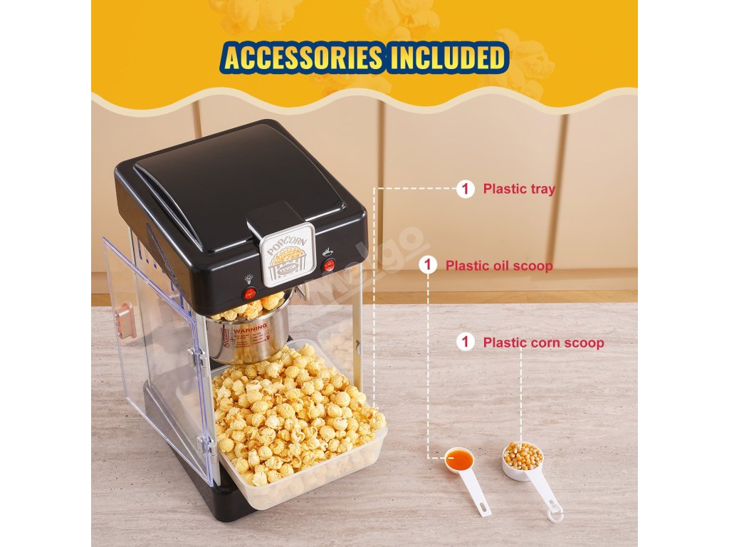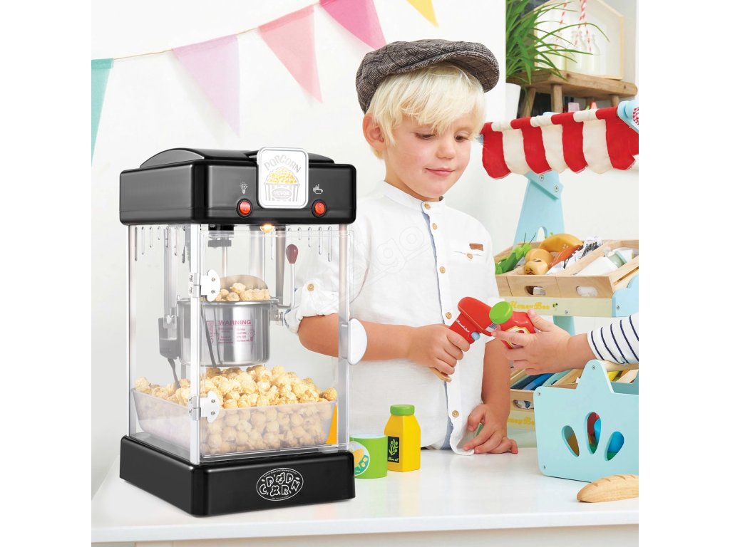 Nezávislý dvojitý spínač umožňuje, aby se popcornovač začal vařit; hotový popcorn spadne na ohřívací tác a zůstane čerstvý, dokud ho nebudete chtít podávat. Teplé 10W světlo jasně osvětlí váš popcorn.