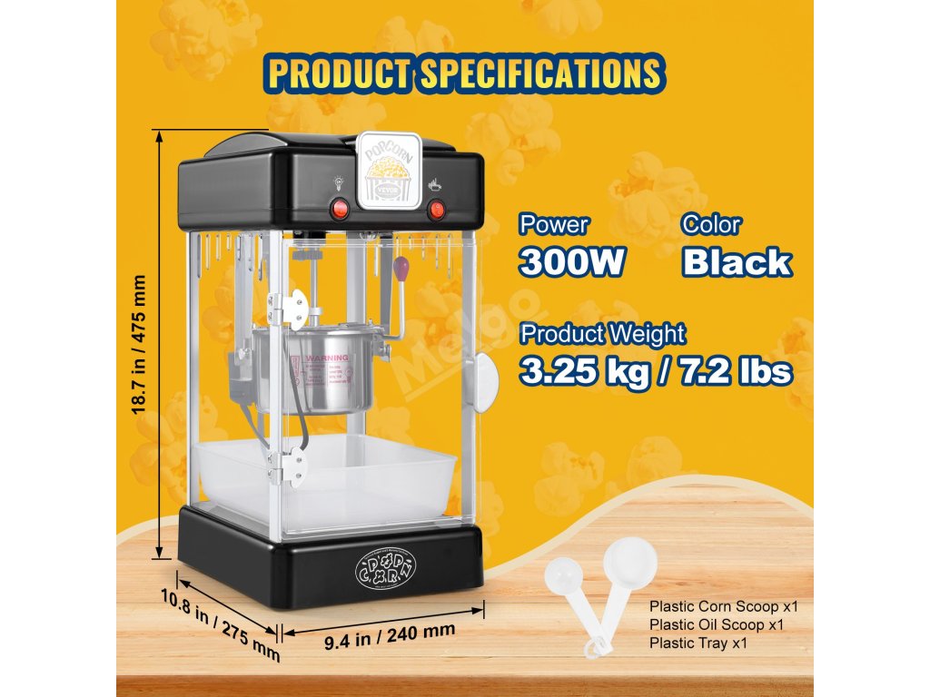 Stroj na pukance 300w, 2.5 oz kotlík, 4 qt na dávku, stolní