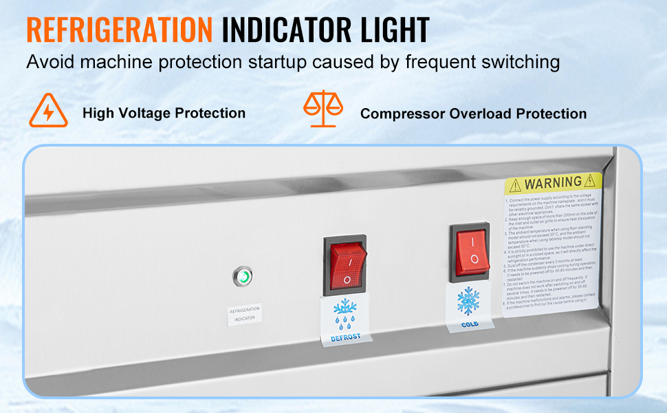 Abychom zabránili opakovanému spínání, které by mohlo spustit ochranu stroje, zabudovali jsme kontrolky spínačů. Podle indikátorů snadno zjistíte stav zmrzlinového stroje.