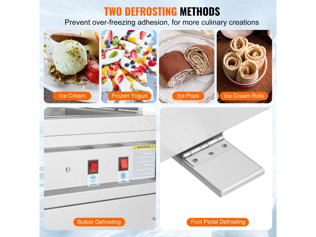Stroj na rolovanou zmrzlinu 13.8"×13.8" nerez, kompresor, 2 stěrky