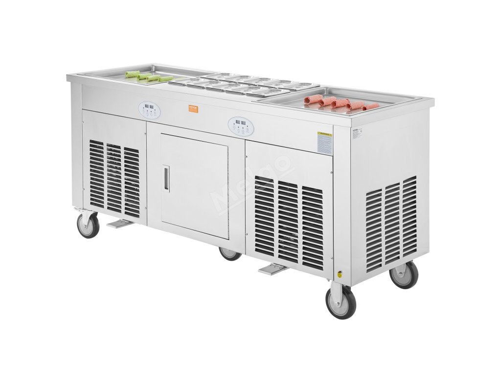 Stroj na rolovanou zmrzlinu 2 ks 17.7"×17.7" nerez, kompresor, 4 škrabky