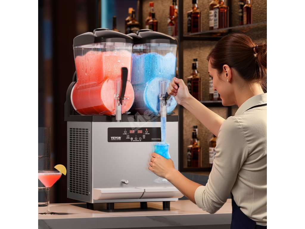 Stroj na slush 12L×2, 96 sklenic, nerezový pro párty a provozu