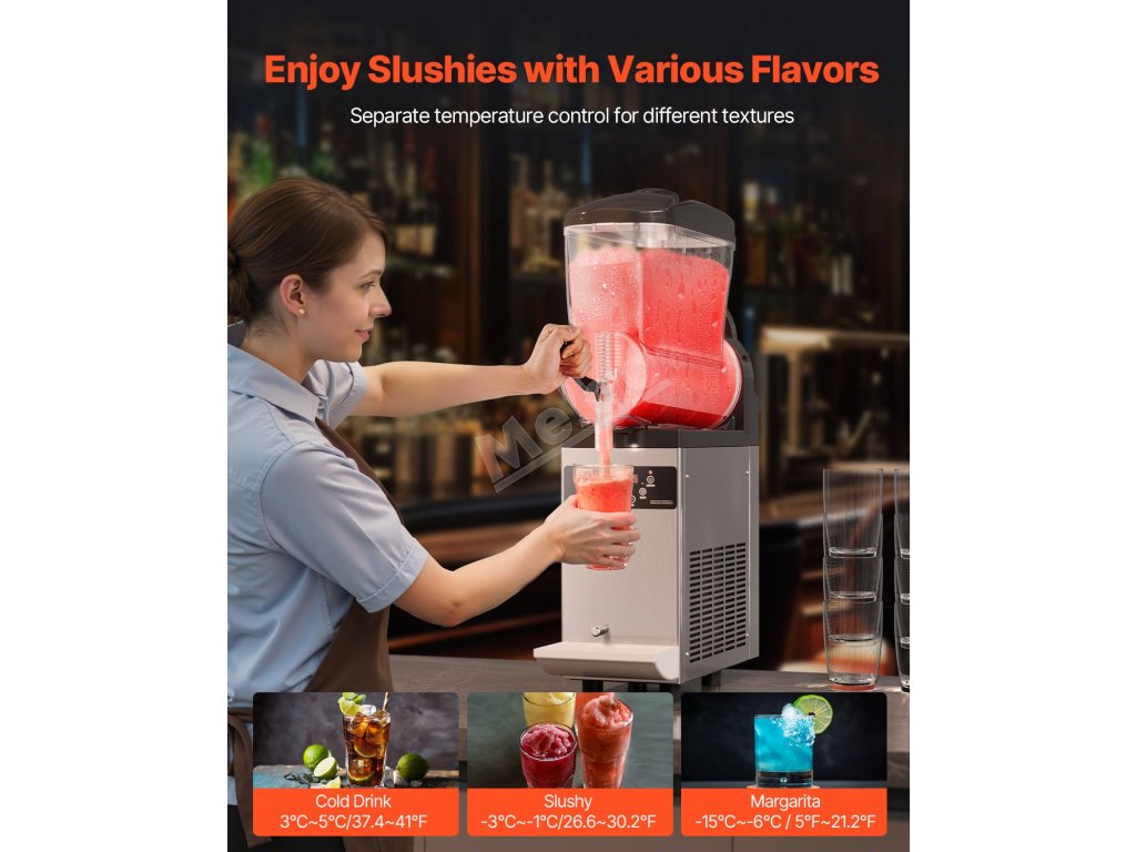 Vylepšený přístroj na výrobu ledové tříště nabízí rozsah nastavení teploty 5 ~ 50 ℃, takže je vhodný pro přípravu různých nápojů včetně džusů, ledové kávy, čaje a dokonce i margarity.