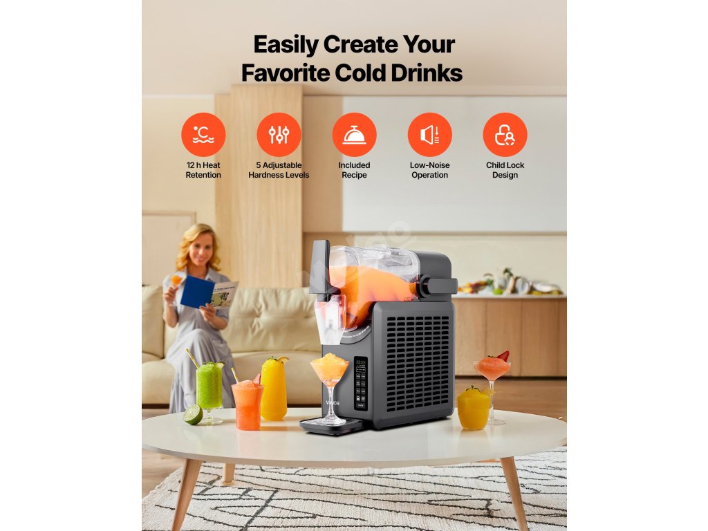 Rozlučte se s ředěnými nápoji bez chuti! S naším výrobníkem slushie si doma snadno připravíte slushie, mražené koktejly nebo studené nápoje, které budou hladší, bohatší a lahodnější.
