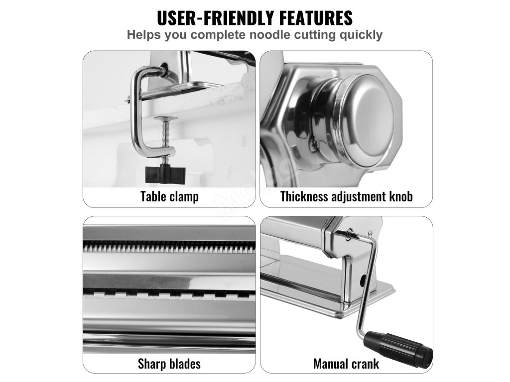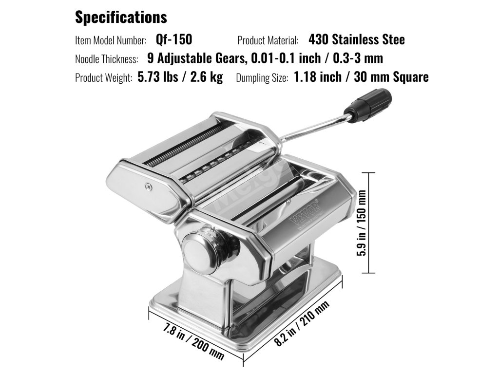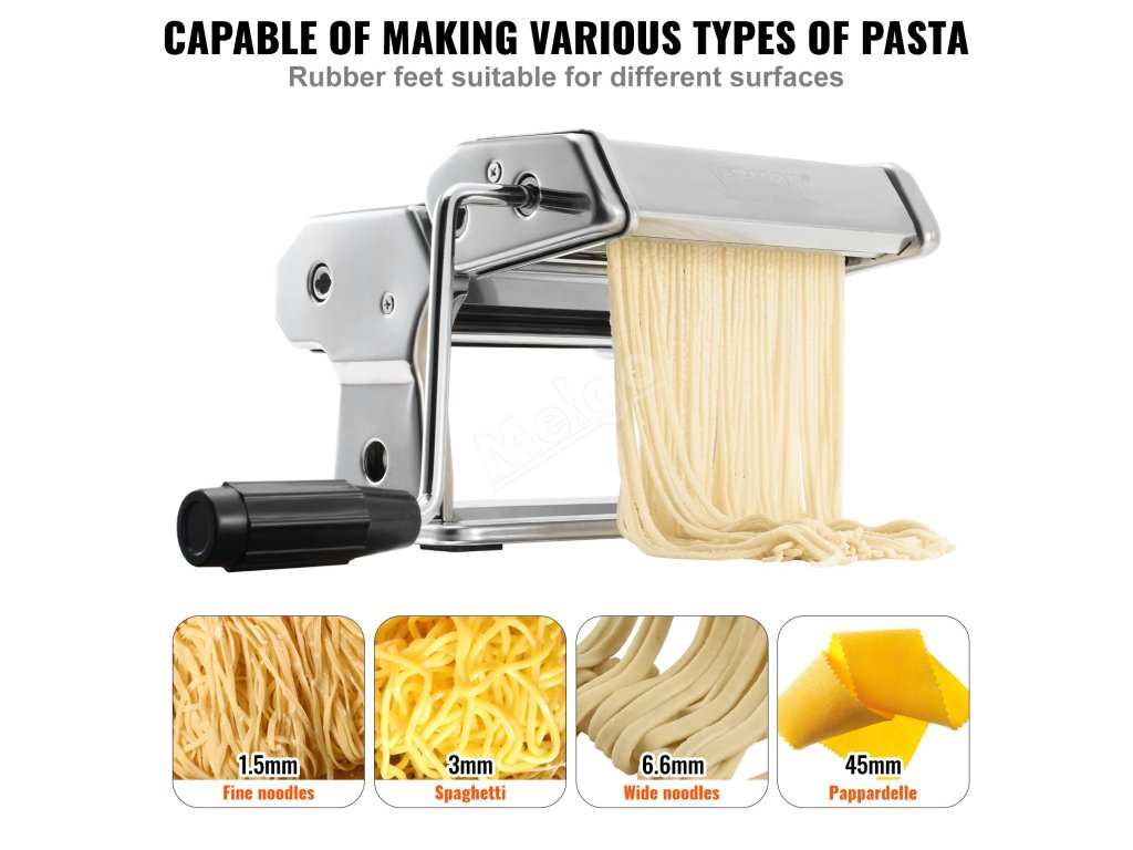Tento odolný ocelový strojek na těstoviny vám umožní připravit celou řadu těstovinových pokrmů. Můžete jej použít k přípravě italských těstovin, špaget, lasagní nebo jiných druhů italských těstovin. Můžete jej také použít k výrobě obalů na knedlíky a wontonů.