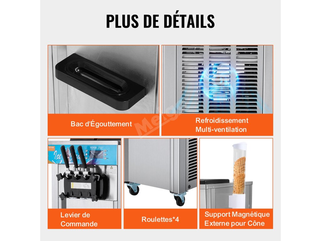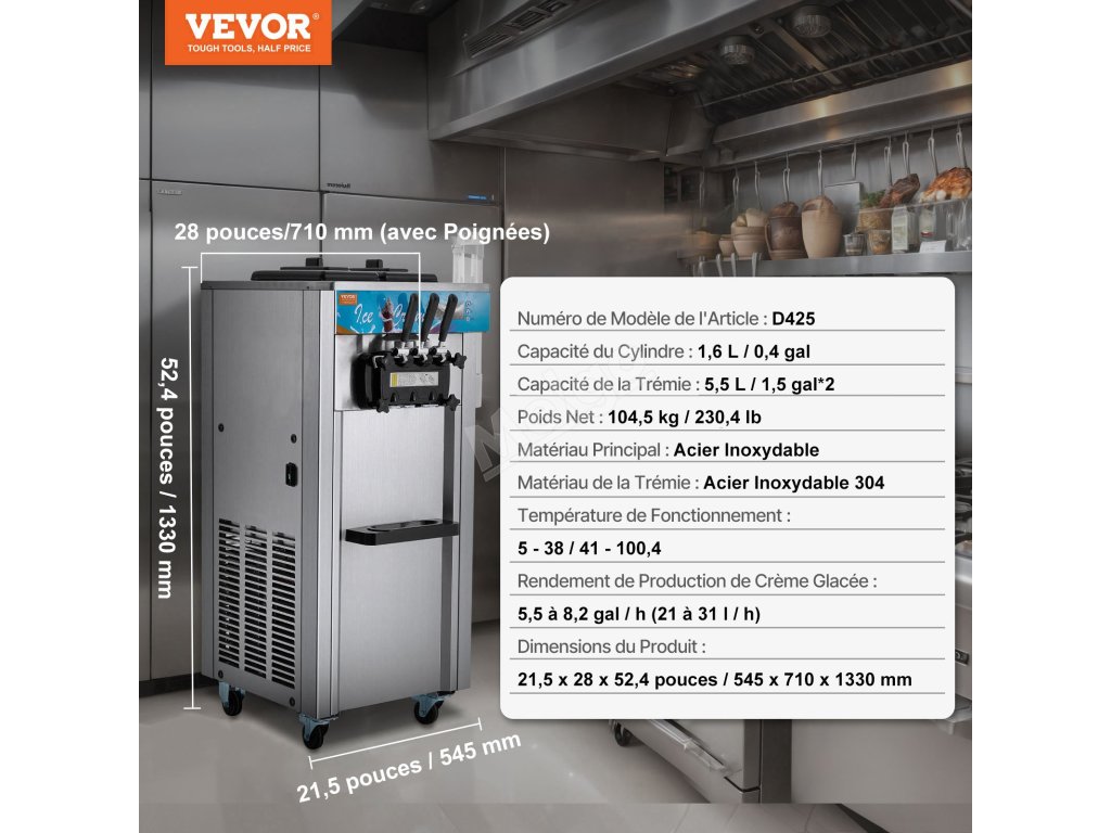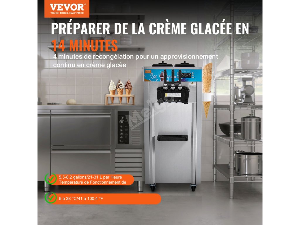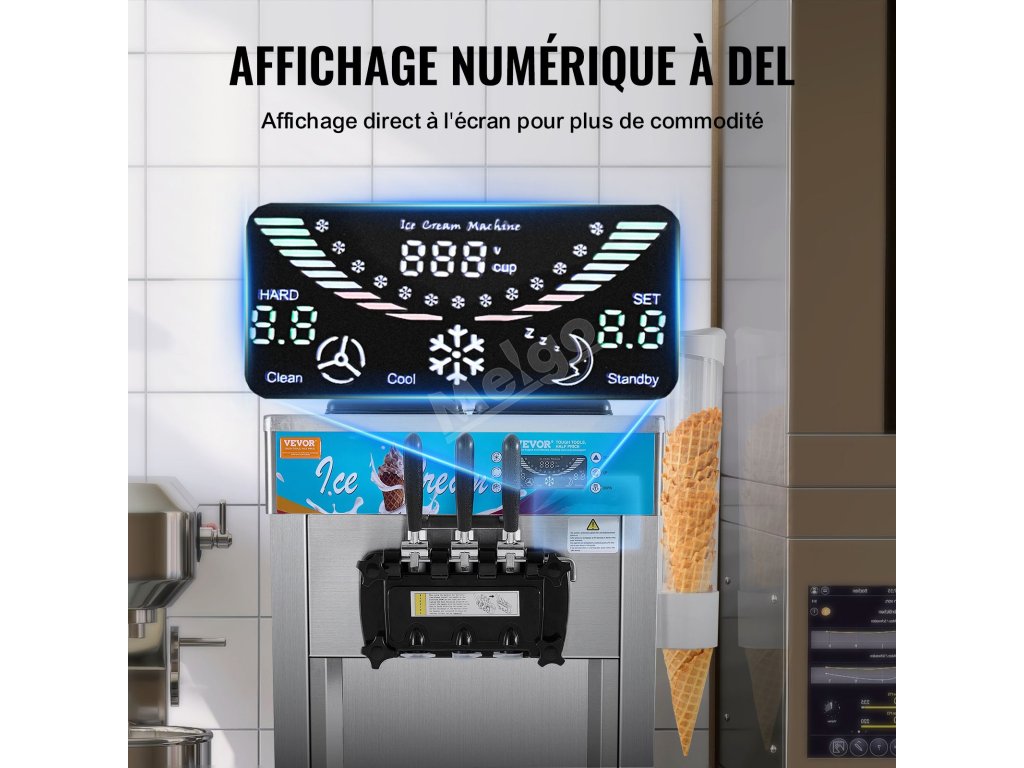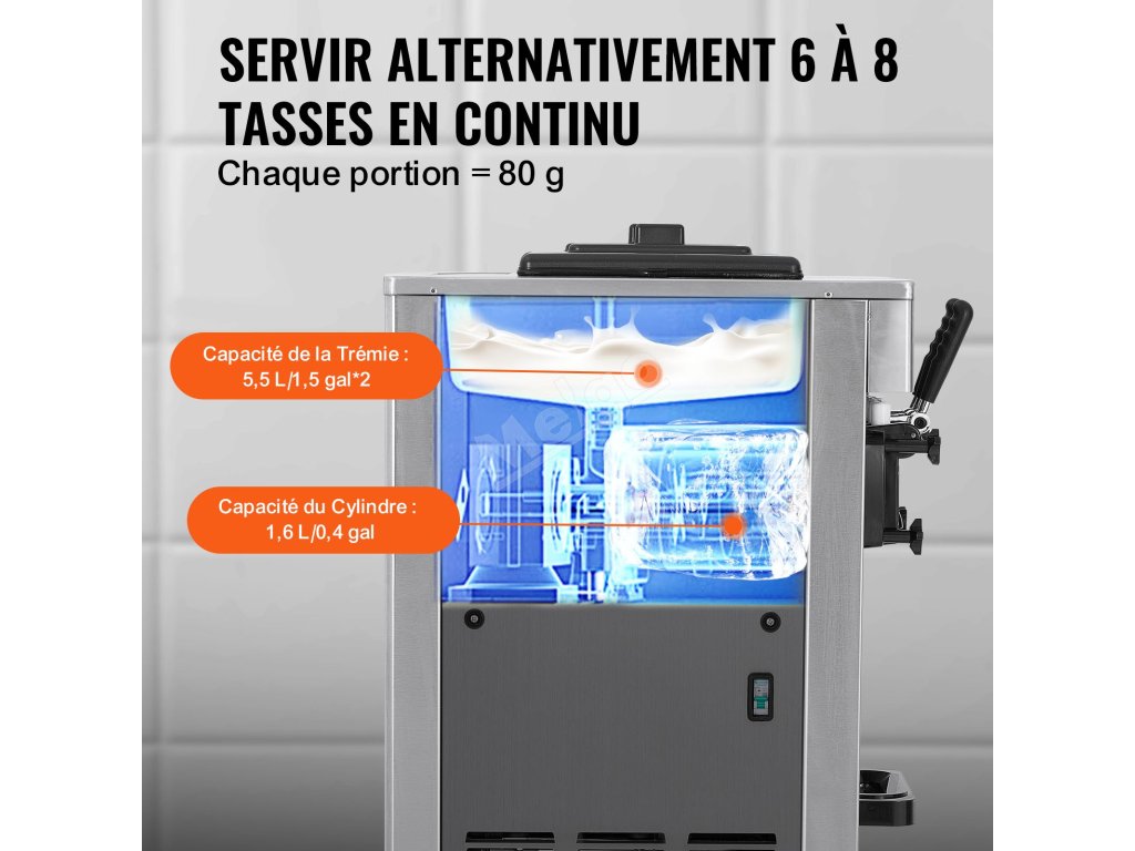 Tento komerční volně stojící zmrzlinovač vyrobí zmrzlinu za pouhých 14 minut. S výkonným kompresorem, který pracuje tiše s hlučností nižší než 66 dB. Dokáže nepřetržitě dodávat 6 až 8 zmrzlinových kuliček a dosáhnout až 21 l/5,5 gal- 31 l/8,2 gal zmrzliny za hodinu pro dokonalou zmrzlinu.