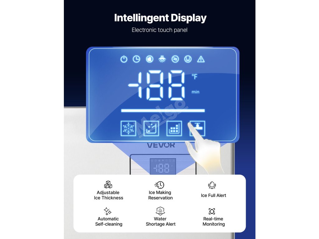 Tento komerční výrobník ledu poskytuje nepřetržitý přísun ledu a je vybaven inteligentním ovládacím panelem pro snadné ovládání a pohodlné plánování. Jeho funkce samočištění jedním dotykem zajišťuje snadnou údržbu a hygienickou výrobu ledu, takže je ideální pro restaurace, bary, hotely, kavárny a další komerční zařízení.