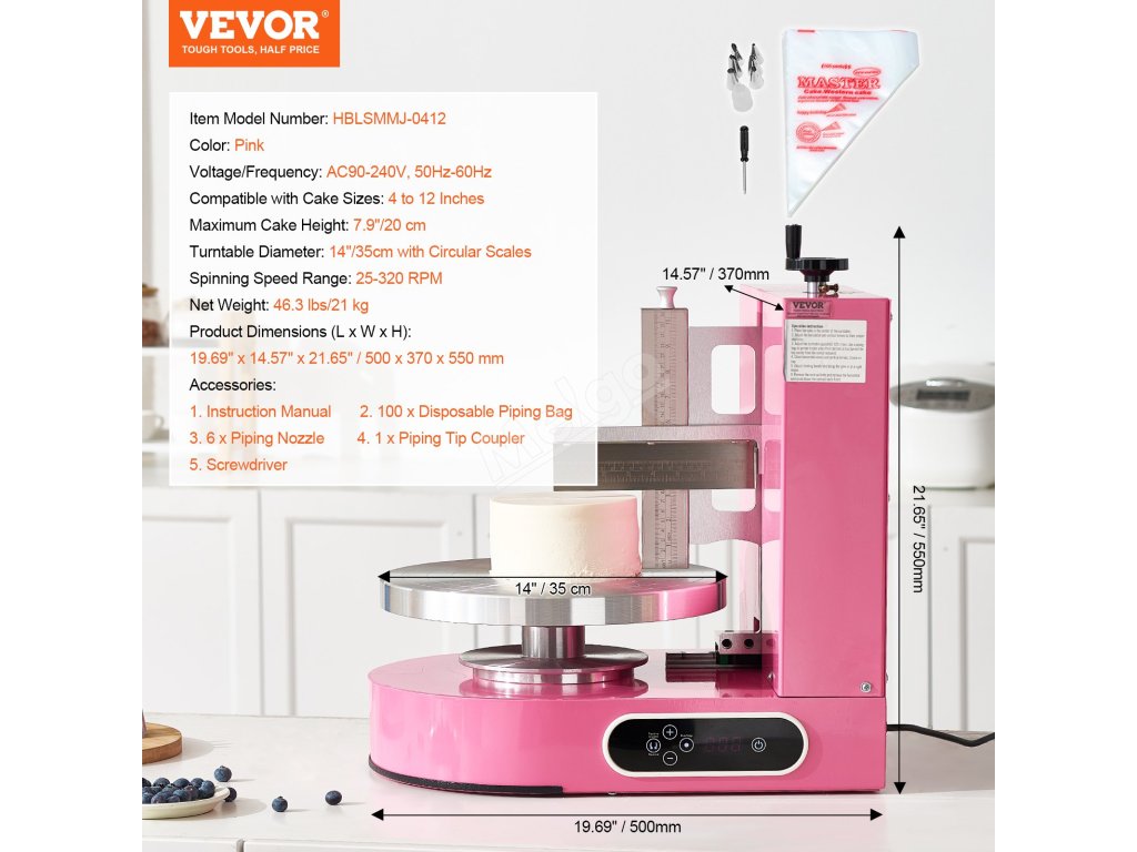 S tímto strojem na zdobení dortů můžete změnit svůj zážitek z pečení. Díky rychlému a přesnému roztírání bude zdobení dortů hračka. Je připraven na to, abyste vytvořili nádherné dorty nejvyšší úrovně. Stroj se také snadno čistí a nezanechává žádné zbytky, což výrazně zvyšuje efektivitu.