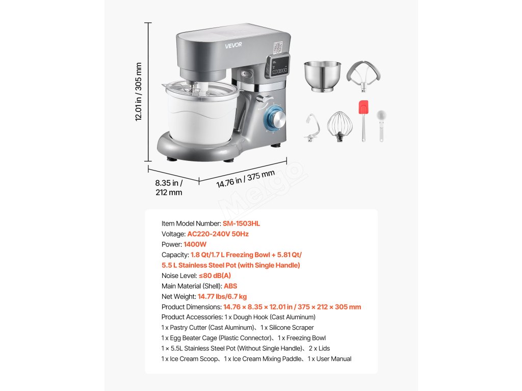 Stroj na zmrzlinu a mixér 1.7 L, 6 rychlostí, digitální displej