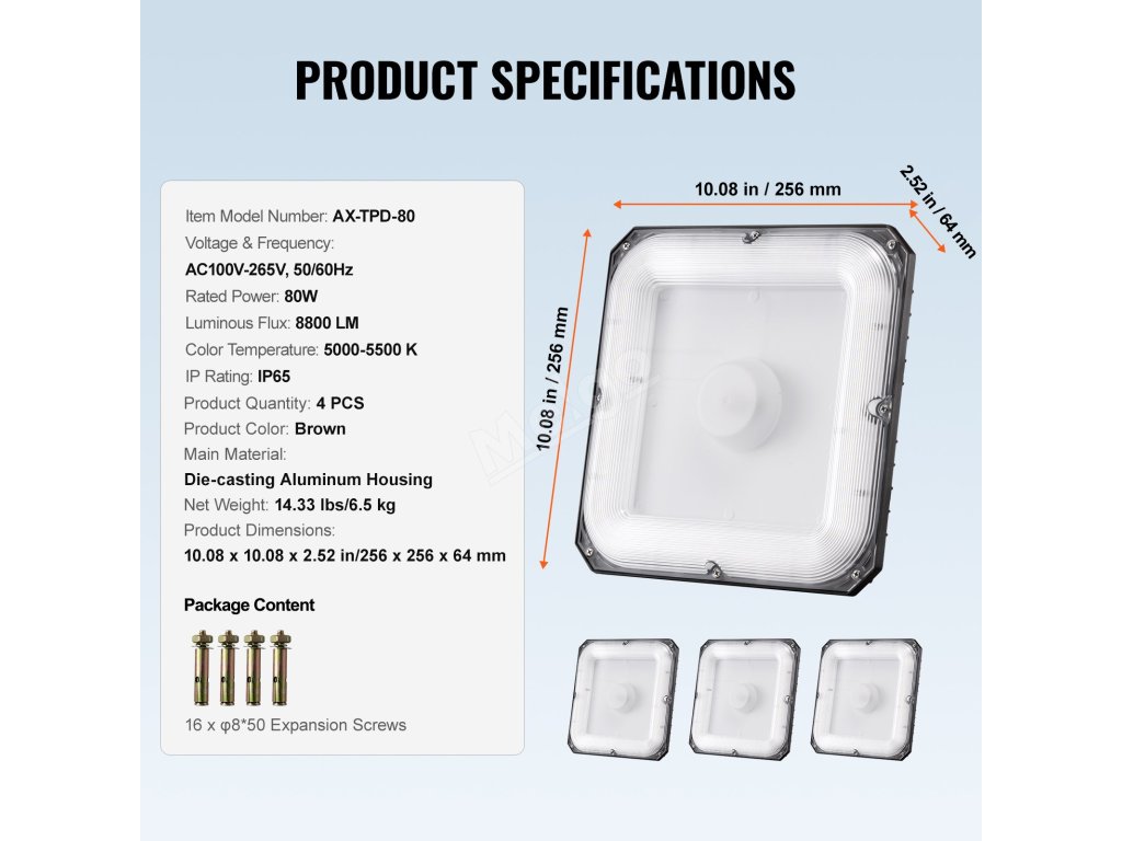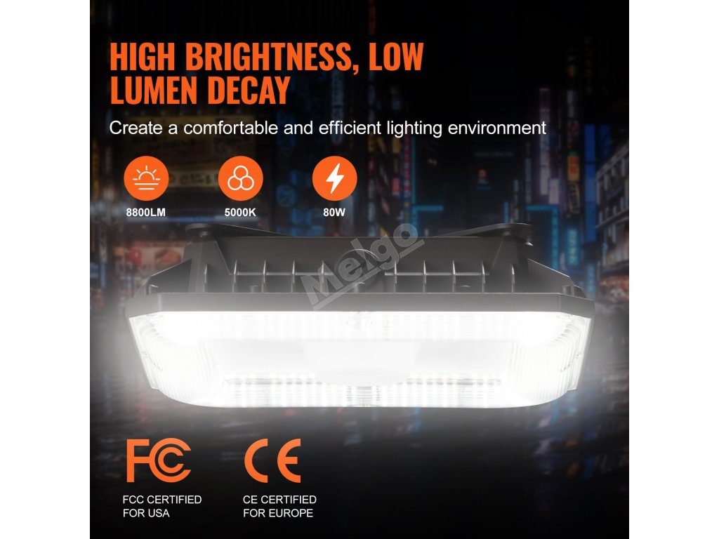 Vyzkoušejte si vysoce kvalitní osvětlení s našimi 80W LED svítidly s baldachýnem, která jsou navržena s výjimečnou kvalitou a přísnými standardy! Vyzařují zářivě bílé denní světlo (5000K) s intenzitou 8800 LM a širokým vyzařovacím úhlem 100°, který zajišťuje větší plochu pokrytí.