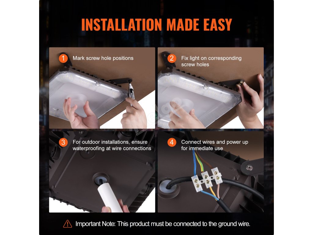 Naše venkovní světla LED s baldachýnem se snadno instalují a jsou uživatelsky přívětivá, dodávají se včetně šroubů pro montáž na stěnu a návodu k instalaci. Díky našim srozumitelným pokynům můžete snadno postupovat krok za krokem, aby byl proces instalace praktický a bez námahy.
