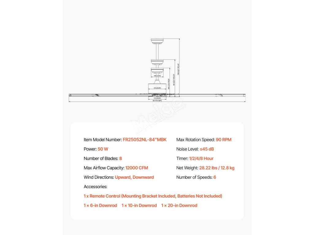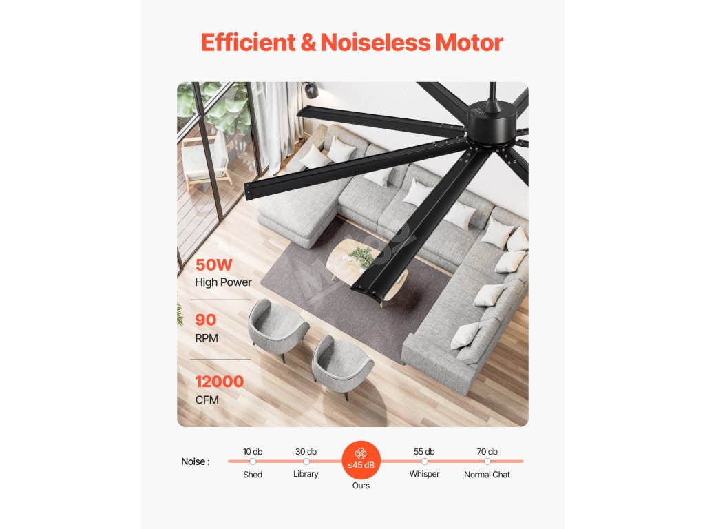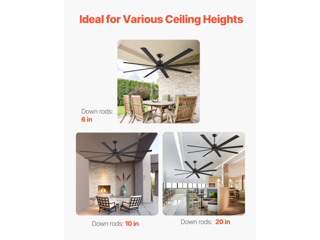 Stropní ventilátor 213 cm, 8 lopatek, dc motor, 6 rychlostí