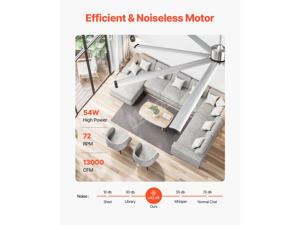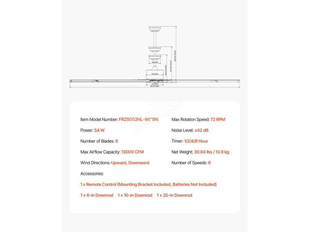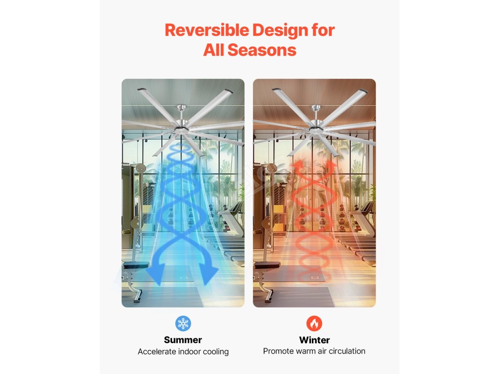 Stropní ventilátor 244 cm, 8 hliníkových listů, 6 rychlostí, dc motor