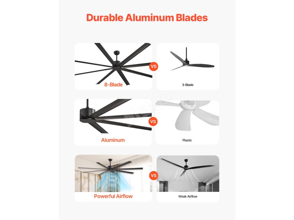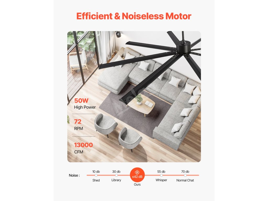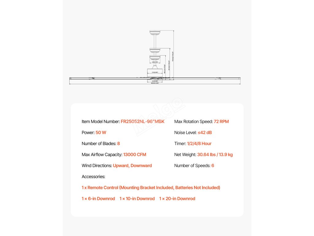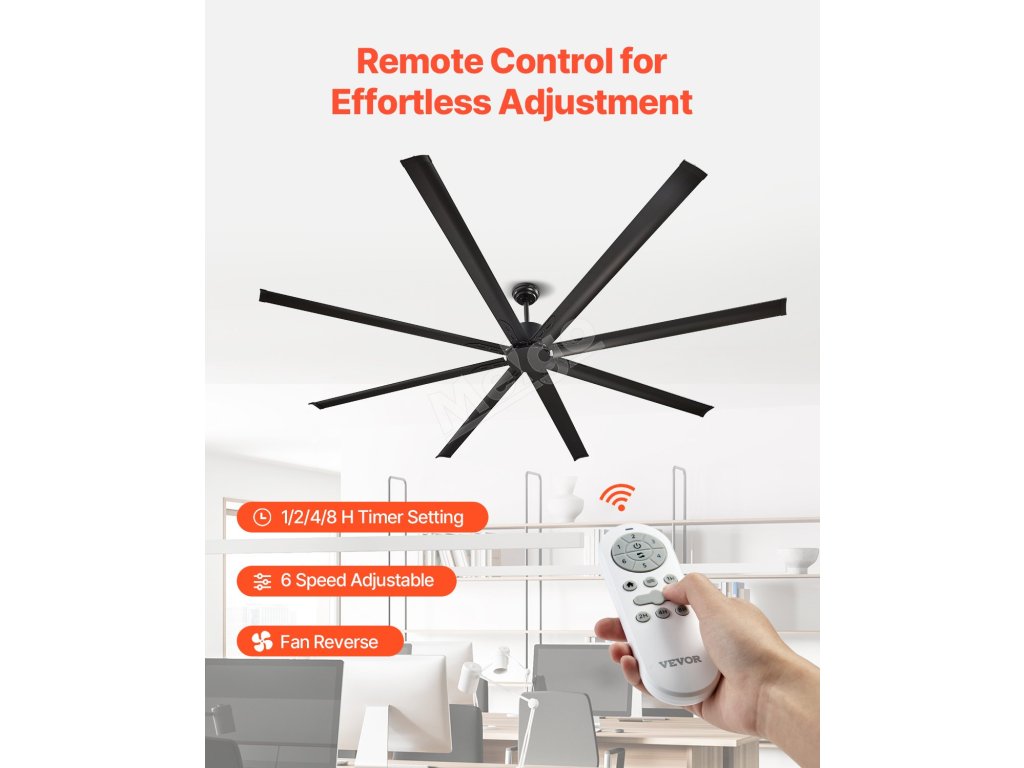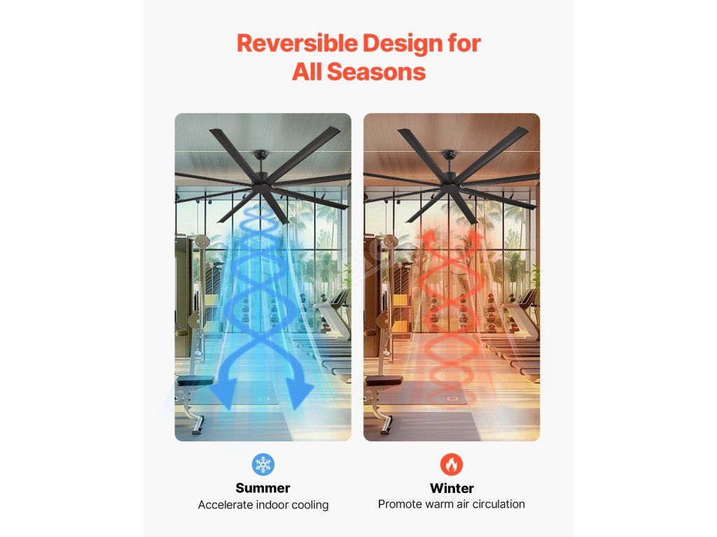 Stropní ventilátor 244 cm, 8 lopatek, reverzní dc, 6 rychlostí, černý