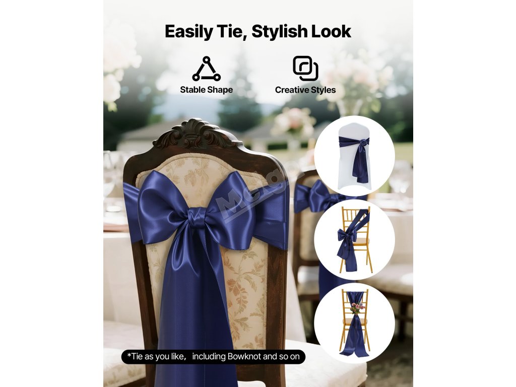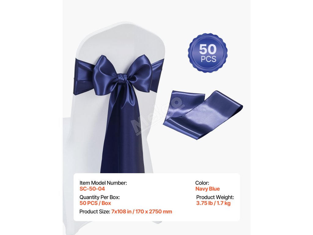 Stuhy na židle 50 ks, 7×108 inch, tmavě modré, na svatbu a oslavy